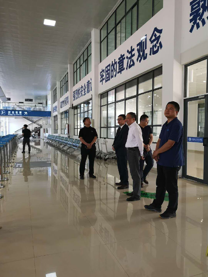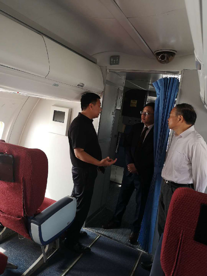 在刘品生理事长的带领下,龚锐博士一行先后实地参观了模拟登机大厅实训室、波音737飞机实训基地、航空技术系发动机实训室。